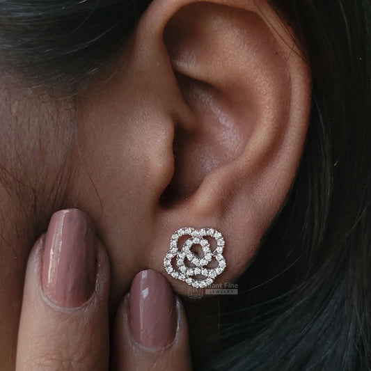 Extra 10% Off Auto-Applied at CheckoutRound Lab Grown Diamond Earrings - Rose Flower Design