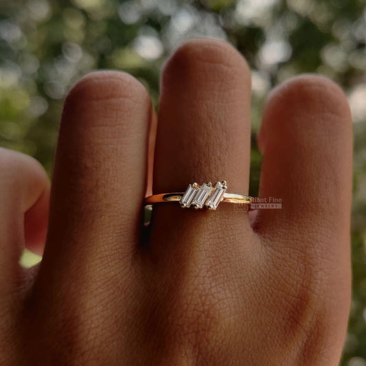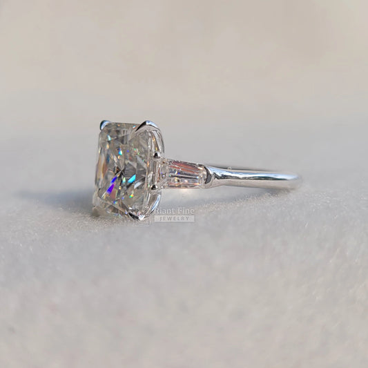 Three Stone Emerald Cut Lab Diamond Engagement Ring