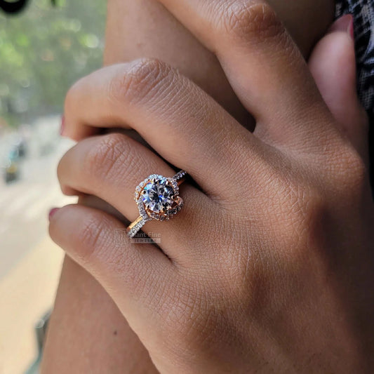 Extra 10% Off Auto-Applied at CheckoutVintage Round Diamond Gold Hidden Halo Engagement Ring