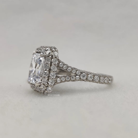 Vintage Radiant Cut Moissanite Halo Ring | 14K Gold Pave Set