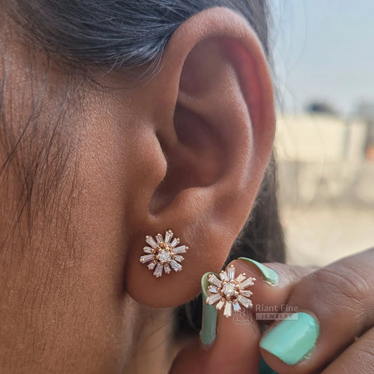 Extra 30% Off Auto-Applied at Checkout14K Rose Gold Baguette Diamond Stud Brust Stud Earrings