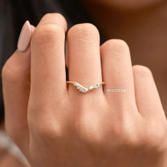 Extra 30% Off Auto-Applied at Checkout14K Gold Marquise Diamond Curved Wedding Band
