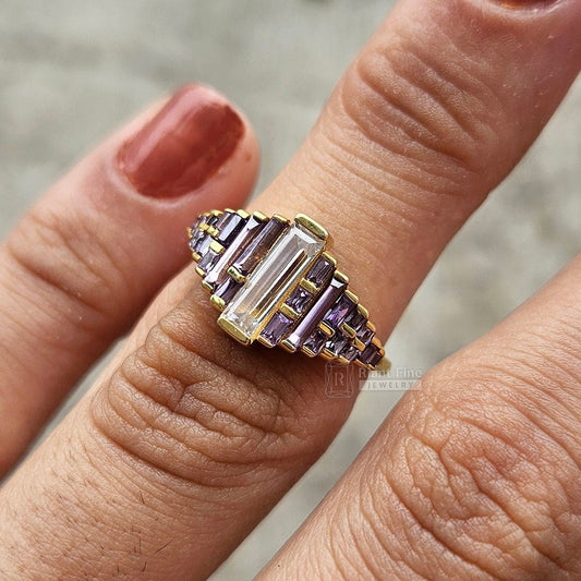 Extra 10% Off Auto-Applied at CheckoutBaguette Cut Purple Sapphire Engagement Ring in 14K Gold