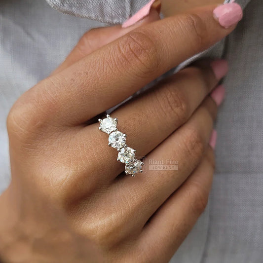 Extra 30% Off Auto-Applied at CheckoutFour Stone Round Moissanite Wedding Band in 14K Gold