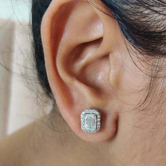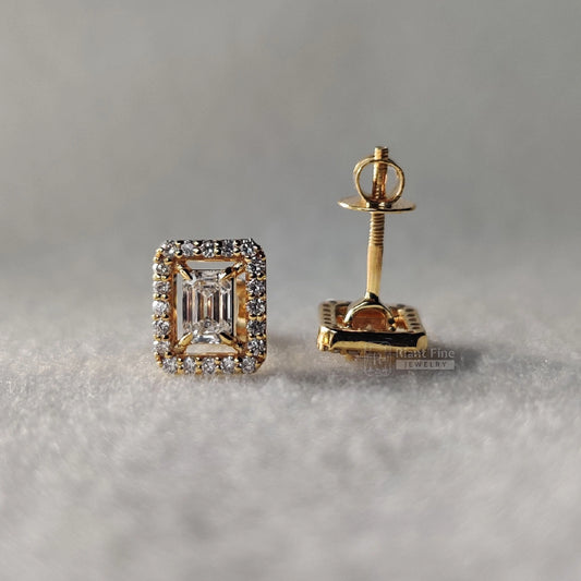 Extra 30% Off Auto-Applied at CheckoutEmerald Cut Lab Grown Diamond Halo Stud Earring In 14K Gold