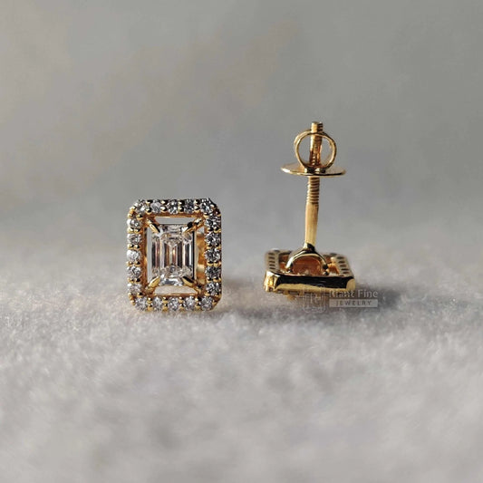 Extra 10% Off Auto-Applied at CheckoutEmerald Cut Lab Grown Diamond Halo Stud Earring In 14K Gold