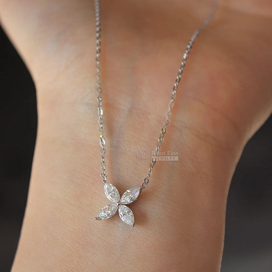 Extra 30% Off Auto-Applied at CheckoutMarquise Diamond Flower Pendant in 14K Gold