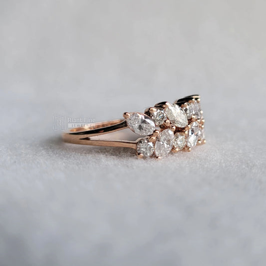 Extra 30% Off Auto-Applied at CheckoutMulti Shape Diamond Curved Wedding Band in 14K Gold