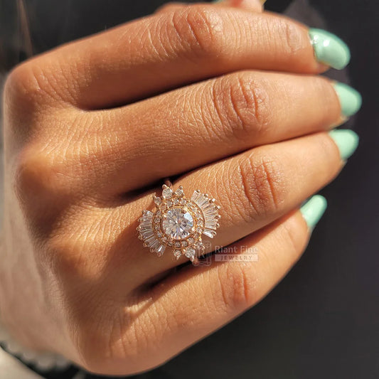Extra 30% Off Auto-Applied at CheckoutVintage Round Diamond Gold Hidden Halo Engagement Ring