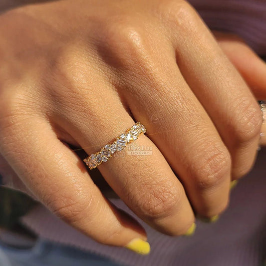 Extra 10% Off Auto-Applied at CheckoutYellow Baguette & Round Diamond Eternity Wedding Band