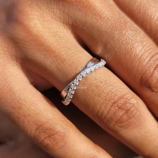 Extra 10% Off Auto-Applied at CheckoutCurved Round Diamond White Gold Wedding Band