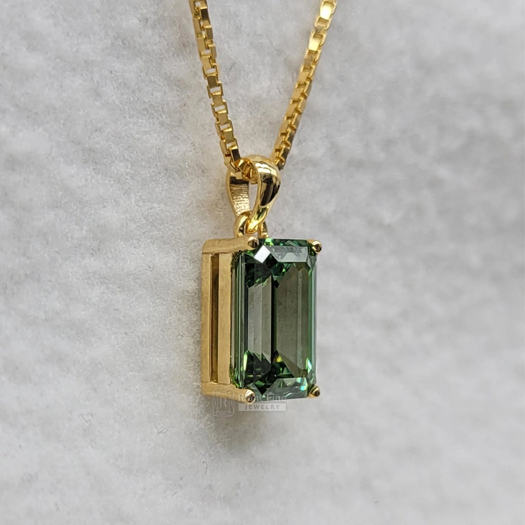 This 3 ct emerald cut lab grown diamond pendant brings deep emotion and infinity love. The rich green color 10.6*3.5 mm emerald cut lab grown diamond is create clean step cut look. The result feels elegant, modern, and effortlessly.