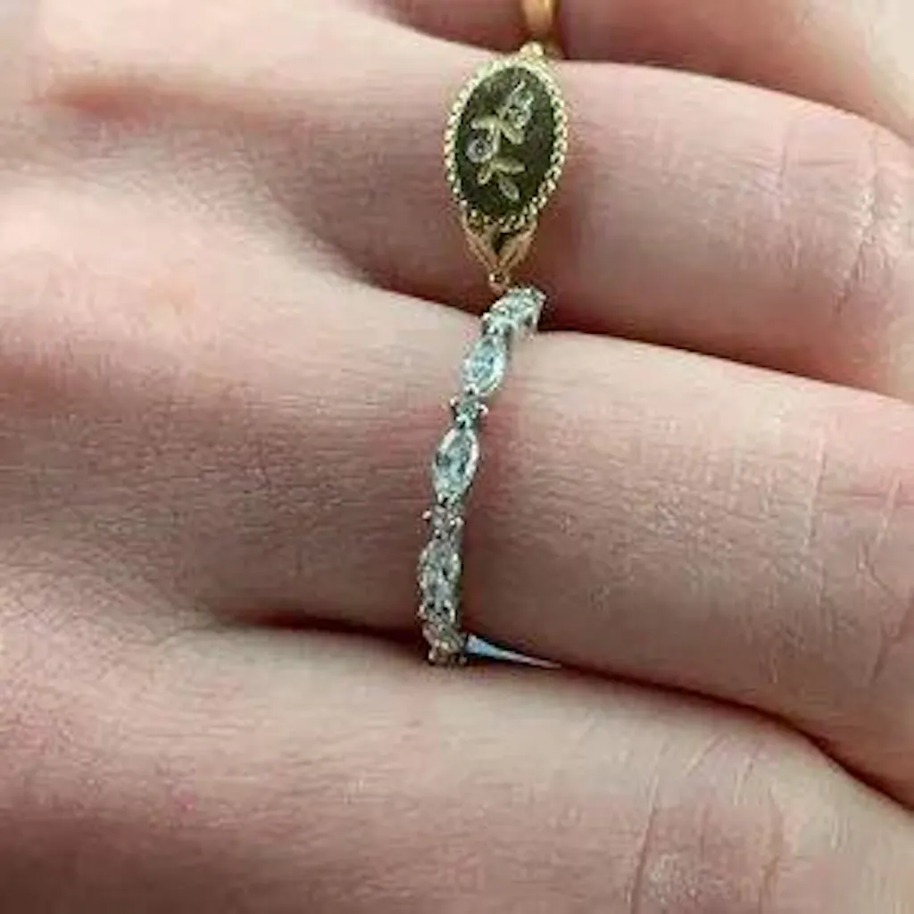 Crafted with marquise and round cut diamonds, the band achieves a seamless flow of brilliance. Each diamond, meticulously set in a 14K gold band, creates a radiant design that enhances the ring’s overall allure. The diamonds are of D-E-F color grade, offering unparalleled brightness, and clarity ranges from VVS to VS, ensuring each stone is virtually flawless.